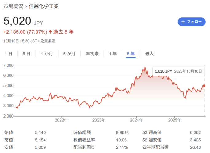 以前から知っている株ではありますが思いつきで購入しているだけで、応援する企業なら信越化学はいいのではと思っていただけのことです