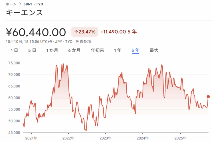 さらに調子に乗って購入したのはキーエンスです