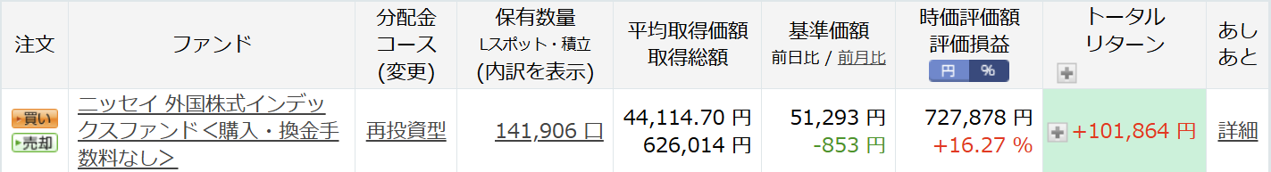 その結果として、ニッセイ外国株式インデックスファンドは+16%と増えちゃいました